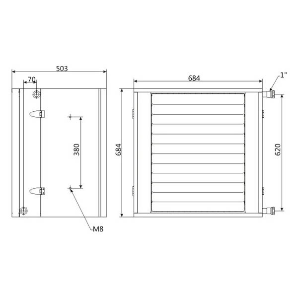 • kolektor výměníku je vyroben z nerezové oceli, žebra jsou od sebe vzdáleny 3 mm, celý výměník je opatřen epoxidovým nástřikem,