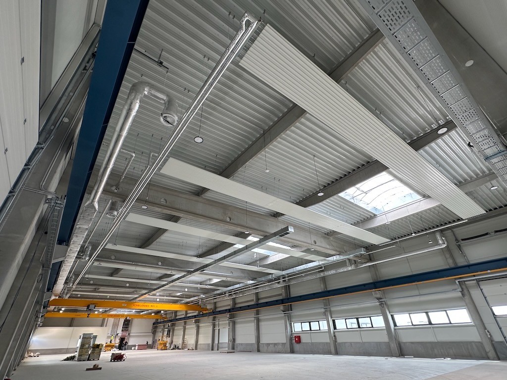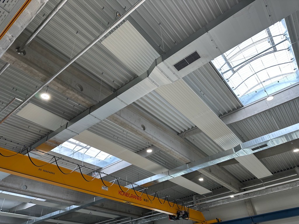 Naše řešení jsme navrhli s důrazem na komfort, efektivitu a dlouhodobou udržitelnost. Instalovali jsme 432 metrů teplovodních sálavých panelů EUTERM (jejichž součástí je izolace), zavěšených na více než 1,1 km ocelových lanek. Tyto panely zajišťují rovnoměrné sálavé teplo i účinné chlazení v obou halách o celkové ploše 3125 m².