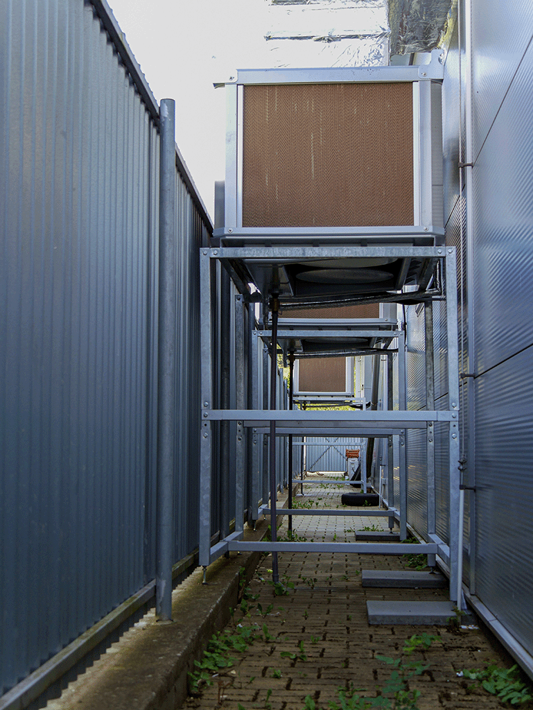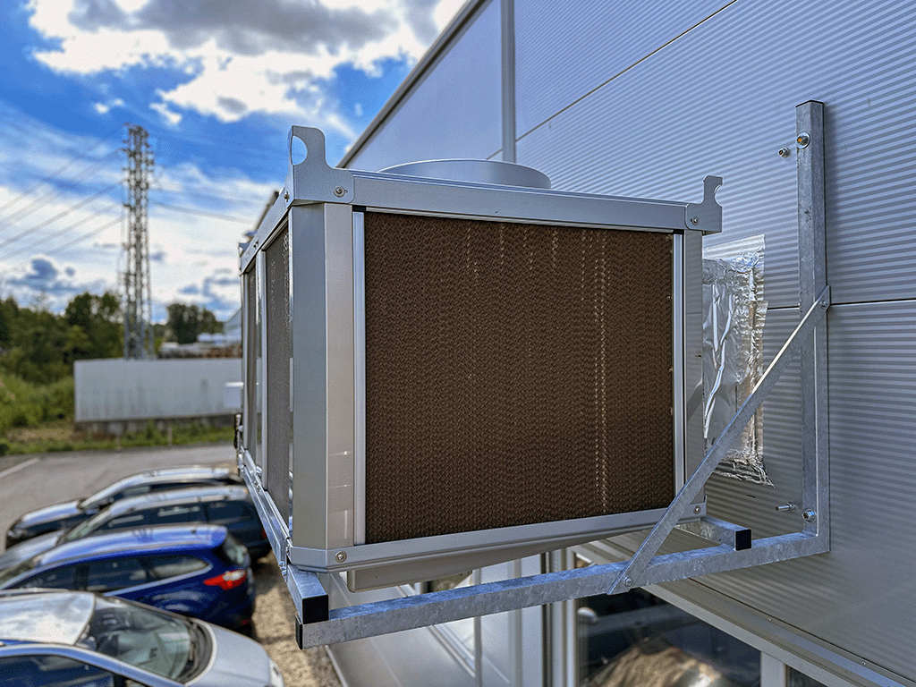 Původní způsob chlazení byl postavený na přirozeném větrání a doplněný mobilními ochlazovači, což však nestačilo. Na základě požadavků zákazníka jsme navrhli a realizovali instalaci adiabatických jednotek Eucold 532, které jsme vybavili ozónovým čističem vody, filtrem proti hmyzu a napojením na vzduchotechnický potrubní rozvod pro distribuci vzduchu do všech částí haly. Chladný vzduch je nyní veden cíleně ke strojům i do pracovních zón.